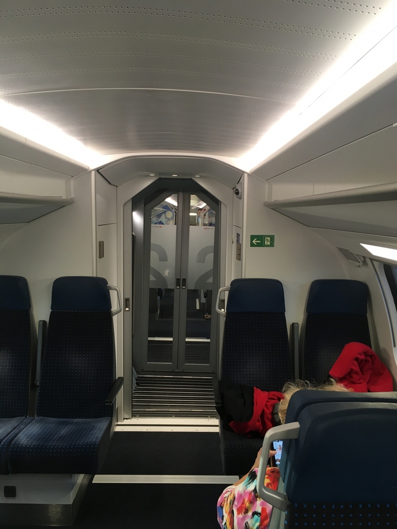 Die 1. Klasse ist tatsächlich sehr schön und bequem, auch optisch. Es gibt zwar keinen Speisewagen allerdings einen Kaffee- und Getränkeautomaten. Finde ich für einen Zug dieser Gattung auch völlig ausreichend, schade, dass man in Deutschland nicht auf so eine Idee kommt.